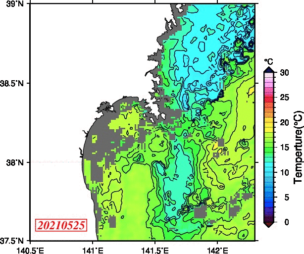 2008年4月から2025年8月までの、仙台湾付近表面水温を掲載しています。