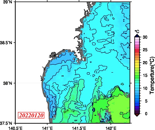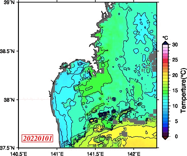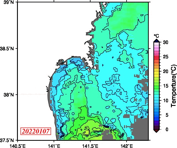 2008年4月から2025年8月までの、仙台湾付近表面水温を掲載しています。
