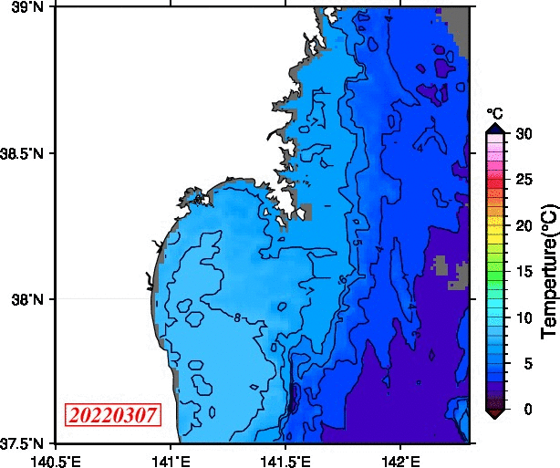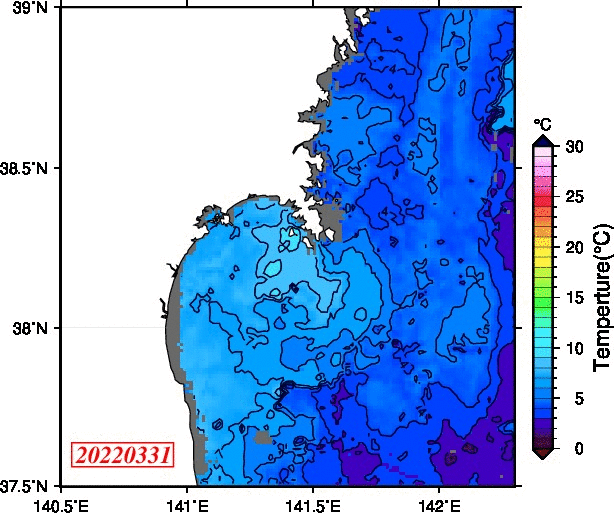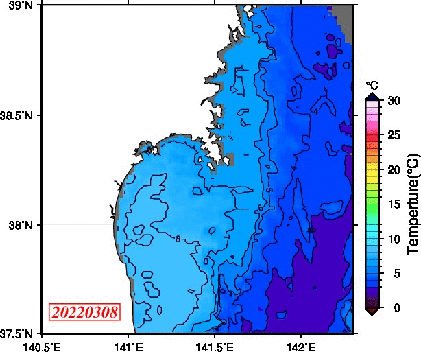2008年4月から2025年8月までの、仙台湾付近表面水温を掲載しています。