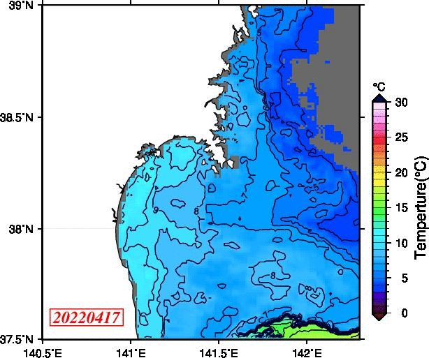 2008年4月から2025年8月までの、仙台湾付近表面水温を掲載しています。