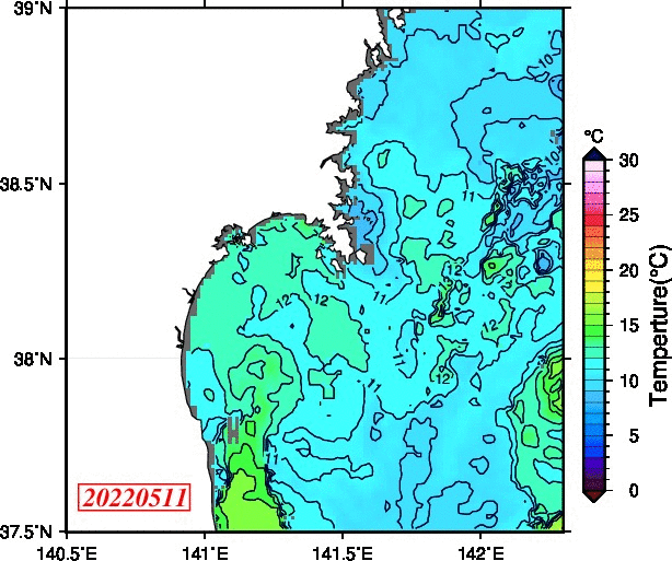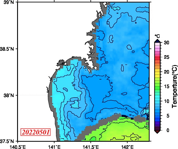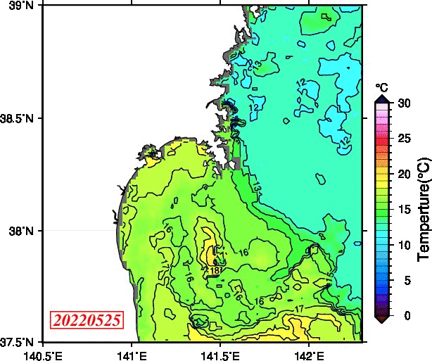 2008年4月から2025年8月までの、仙台湾付近表面水温を掲載しています。
