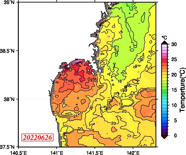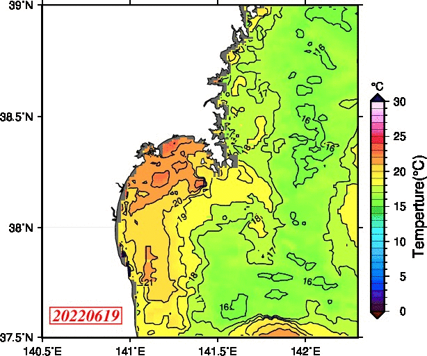 仙台湾付近表面水温(過去のデータ)