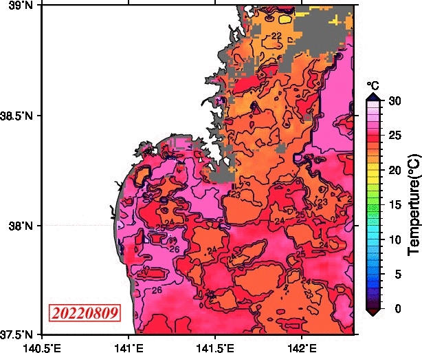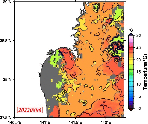 2008年4月から2025年8月までの、仙台湾付近表面水温を掲載しています。