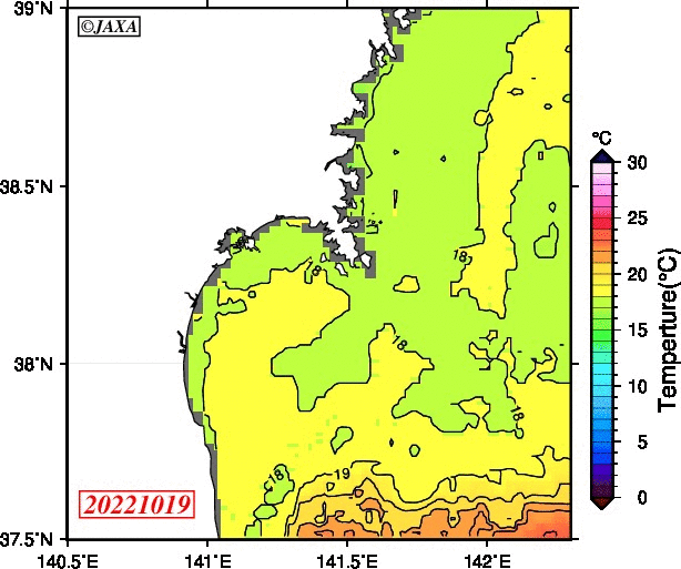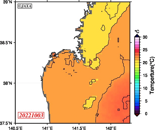 2008年4月から2025年8月までの、仙台湾付近表面水温を掲載しています。