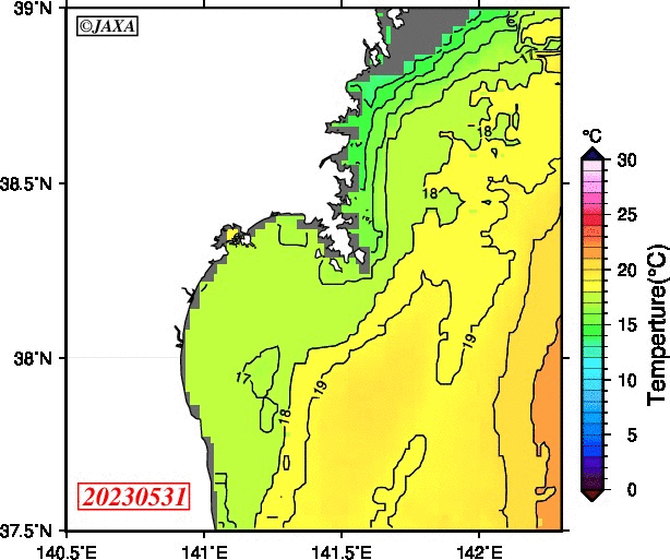 2008年4月から2025年8月までの、仙台湾付近表面水温を掲載しています。