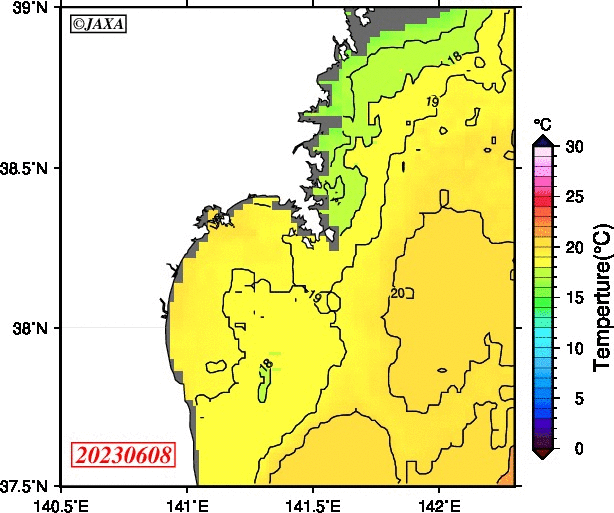 2008年4月から2025年8月までの、仙台湾付近表面水温を掲載しています。