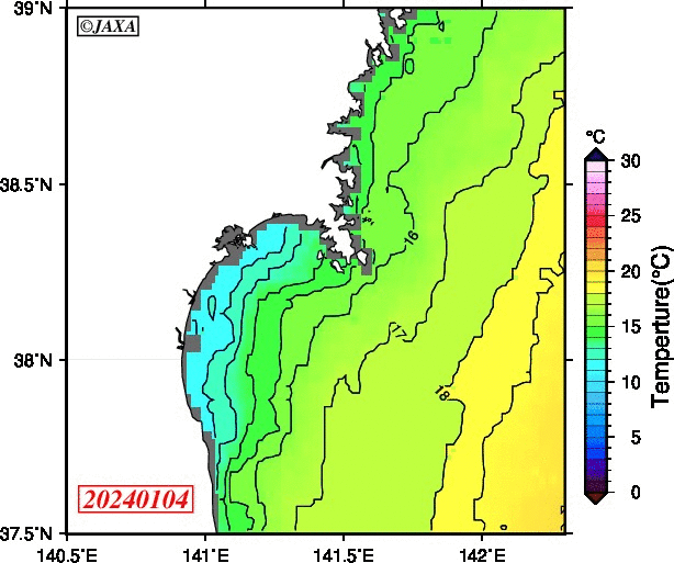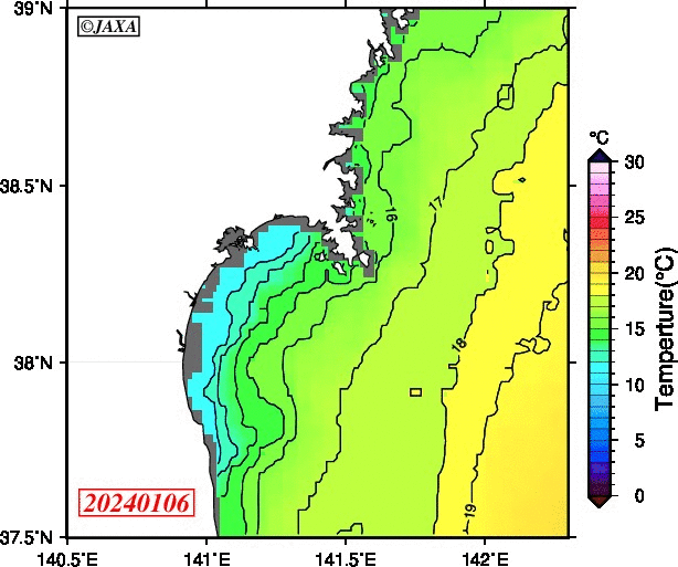 2008年4月から2025年8月までの、仙台湾付近表面水温を掲載しています。