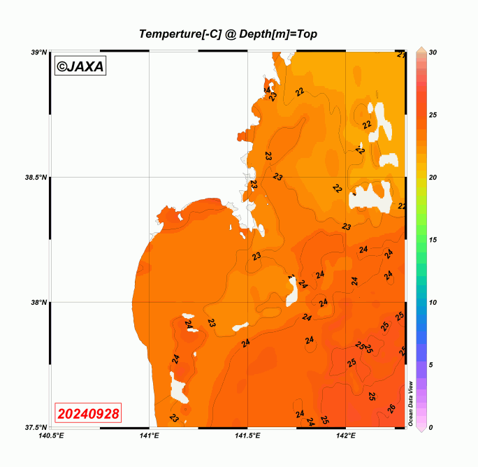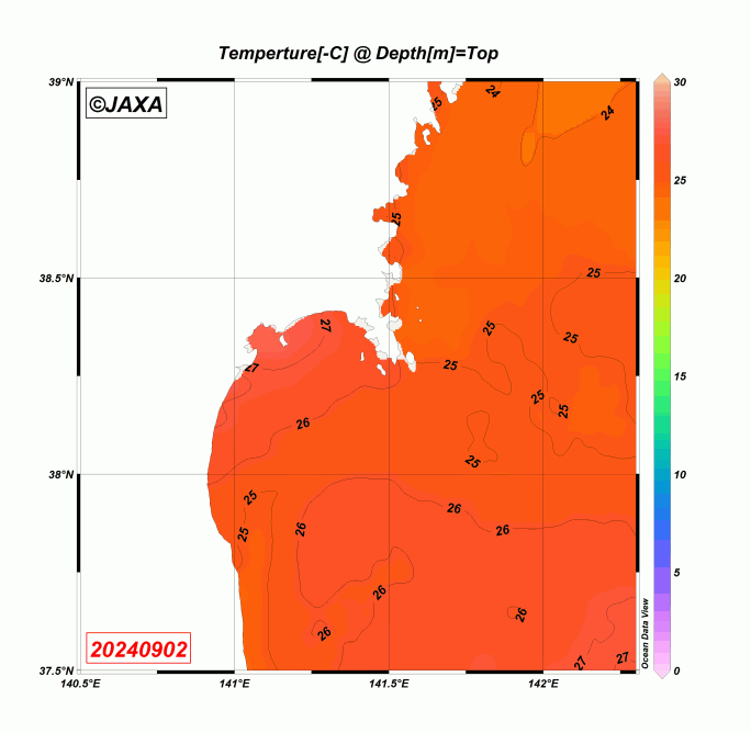 2008年4月から2025年8月までの、仙台湾付近表面水温を掲載しています。
