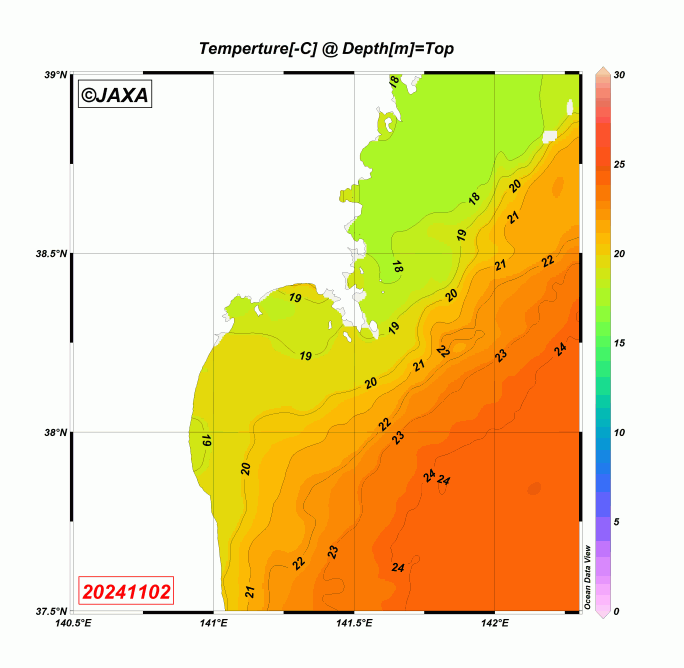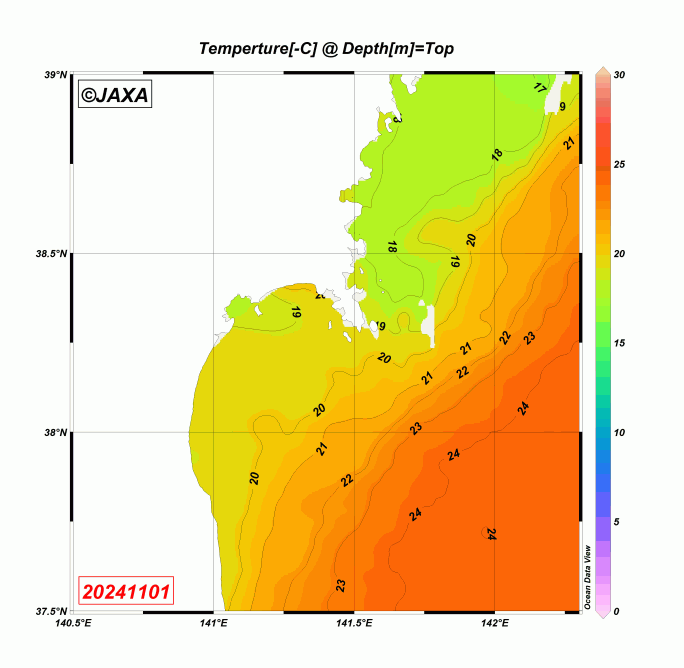 2008年4月から2025年8月までの、仙台湾付近表面水温を掲載しています。