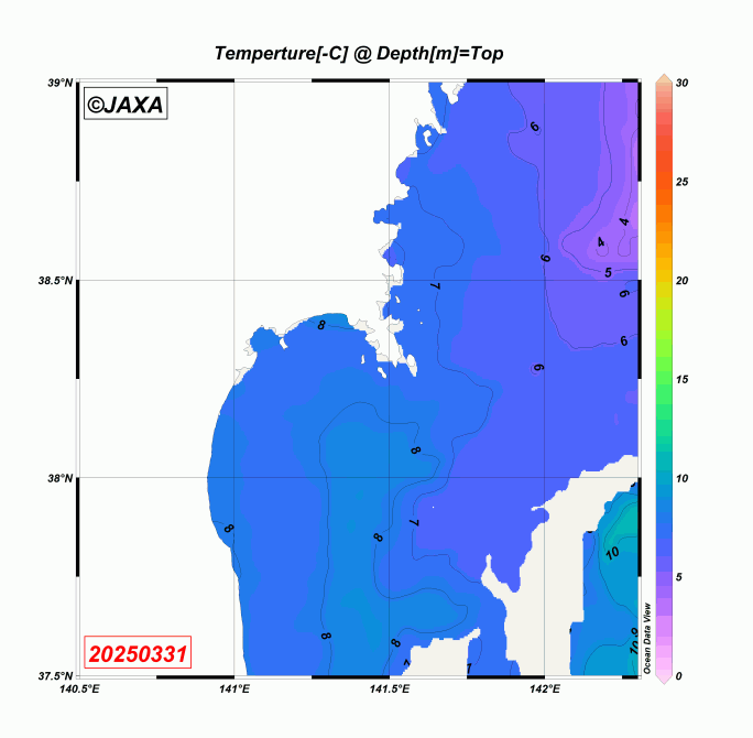2008年4月から2025年8月までの、仙台湾付近表面水温を掲載しています。