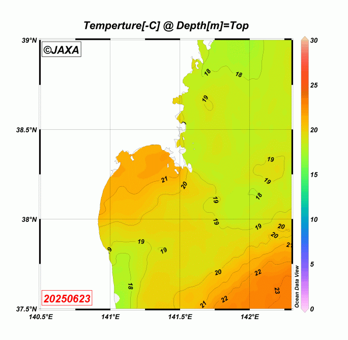 2008年4月から2025年8月までの、仙台湾付近表面水温を掲載しています。