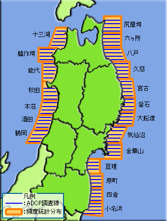 | 東北沿岸域の流向別流速頻度分布図 |