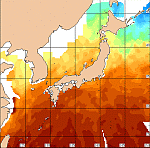 | 該当月における測量船等の観測データを平均して、表面水温図を描画しています。 |