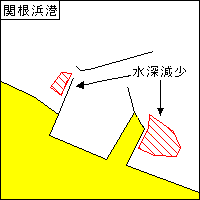 2.下記区域の水深は、図載水深より約0.3m〜2.5m減少している。