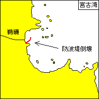 区 域 下記3地点を結ぶ線上 (1) 39-36-55.5N 142-01-25.1E (2) 39-36-56.4N 142-01-26.8E (3) 39-36-57.3N 142-01-27.2E 海 図 W54(分図「宮古湾」) 出 所 二本部海洋情報部