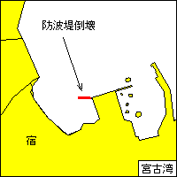 区 域 下記2地点を結ぶ線上 (1) 39-41-18.4N 141-58-13.9E (2) 39-41-18.3N 141-58-12.2E 海 図 W54(分図「宮古湾」) 出 所 二本部海洋情報部