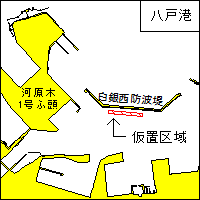 期 間 平成27年2月23日〜当分の間 区 域 下記4地点により囲まれる区域 (1)40-32-10.0N 141-32-13.6E (2)40-32-08.9N 141-32-30.0E (3)40-32-07.9N 141-32-30.0E (4)40-32-09.0N 141-32-13.5E 備 考 ケーソンの四隅に黄色灯(毎4秒に1閃光)を設置 海 図 W65 出 所 八戸海上保安部