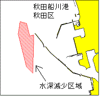 下記区域の水深は、図載水深より約0.5m〜3m減少している。