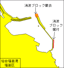 消波ブロック撤去 区 域1 (1) 38-18-18N 141-05-15E 付近 消波ブロック据付 区 域2 下記2地点を結ぶ線上付近 (2) 38-18-11.0N 141-05-21.7E (3) 38-18-08.4N 141-05-21.5E 海 図 W64A 出 所 二本部海洋情報部