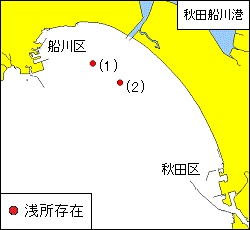 位 置 (1) 39-52-14.3N 139-54-34.5E 水深約 9.3m (2) 39-51-22.2N 139-56-11.5E 水深約 15.6m 海 図 W1192 出 所 二本部海洋情報部