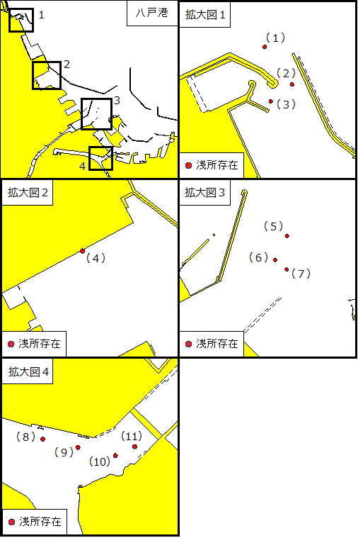 位 置 (1) 40-35-16.6N 141-28-39.8E 水深約 4.4m