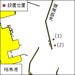 期 間 当分の間 位 置 下記各地点 (1) 37-50-50.7N 140-58-27.0E (2) 37-50-42.8N 140-58-29.3E 備 考 上記位置に工事区域を明示する黄色灯付黄色浮標(毎4秒に1閃光)を設置 海 図 W1089 出 所 福島海上保安部