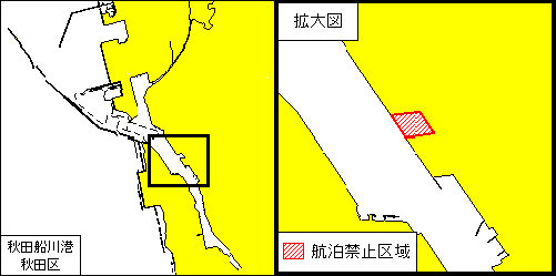 期 間 令和7年4月4日〜当分の間 区 域 下記4地点により囲まれる区域 (1) 39-45-14.9N 140-03-32.1E (2) 39-45-15.5N 140-03-38.6E (3) 39-45-11.8N 140-03-41.9E (4) 39-45-11.1N 140-03-35.4E 備 考 岸壁工事に伴う船舶の航泊禁止 (当該工事作業に従事する船舶を除く) 鋼管杭に黄色灯付浮標(毎4秒に1閃光)を設置 海 図 W148 出 所 秋田船川港長公示第1号