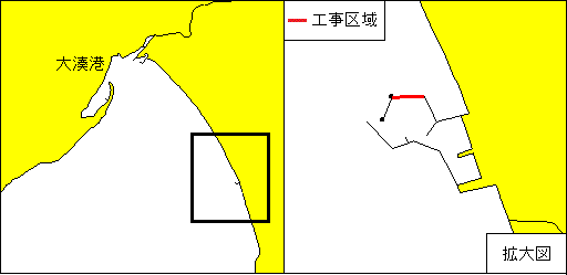 期 間 当分の間 区 域 2地点を結ぶ線上付近 (1) 41-12-12.0N 141-15-32.5E (2) 41-12-11.8N 141-15-26.2E 備 考 潜水作業を伴う 海 図 W1157 出 所 青森海上保安部