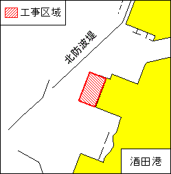 期 間 令和8年1月1日〜4月30日、日出〜日没 区 域 下記4地点により囲まれる区域 (1) 38-56-41.8N 139-48-41.0E (岸線上) (2) 38-57-01.0N 139-48-50.8E (岸線上) (3) 38-57-05.3N 139-48-36.6E (4) 38-56-46.0N 139-48-27.0E 備 考 起重機船を使用 潜水作業を伴う 潜水作業中は国際信号旗「A」旗を掲揚 海 図 W1160 出 所 酒田海上保安部