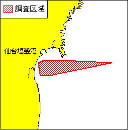 期 間 令和8年3月3日〜7日 区 域 下記6地点により囲まれる区域 (1) 38-12.5N 141-07.5E (2) 38-12.5N 141-25.0E (3) 38-10.0N 142-30.0E (4) 37-57.5N 141-12.5E (5) 37-57.5N 141-02.5E (6) 38-10.0N 141-00.0E 備 考 調査船「若鷹丸」(692t) による曳網及び海洋調査 停船して観測機器を垂下する 海 図 W1098 出 所 水産研究・教育機構