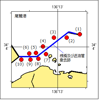 7年343項 本州南岸 − 尾鷲港 浅所存在 (四管区水路通報7年213項 関連) 尾鷲港において、浅所が存在する。 位 置 下記7地点付近 (1) 34-04-05.6N 136-13-11.9E (約15.0m) (2) 34-04-04.1N 136-13-04.8E (約15.5m) (3) 34-04-04.2N 136-12-58.1E (約13.1m) (4) 34-04-00.3N 136-12-52.3E (約 8.9m) (5) 34-03-57.4N 136-12-48.4E (約 3.1m) (6) 34-03-57.1N 136-12-44.9E (約 2.9m) (7) 34-03-56.9N 136-12-53.8E (約 4.0m) (8) 34-03-54.9N 136-12-49.8E (約 1.7m) (9) 34-03-54.5N 136-12-45.6E (約 0.7m) (10) 34-03-54.5N 136-12-40.6E (約 0.2m) 海 図 W1059(分図「尾鷲港」) 出 所 第四管区海上保安本部![]()