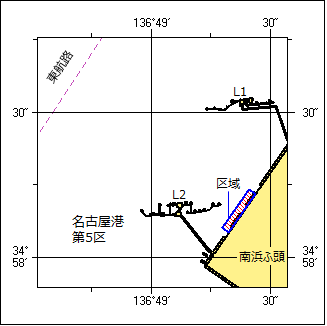7年579項 名古屋港 − 第5区 クラゲ防止網設置 (四管区水路通報7年199項 削除) 南浜ふ頭L2桟橋付近において、クラゲ防止網が設置される。 期 間 令和8年3月31日まで 区 域 34-58-10N 136-49-22E 付近 備 考 展張位置を示す灯付浮標が設置される。 期間中、作業船による点検及び揚収作業が実施される。 潜水作業中は国際信号旗「A」旗が掲揚される。 海 図 W1055B 出 所 名古屋港長