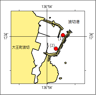 8年54項 本州南岸 − 大王埼、波切港 防波堤改良工事 (四管区水路通報7年275項 削除) 波切港において、防波堤改良工事等が実施される。 期 間 令和8年3月31日までの日出〜日没 区 域 1.34-17-01N 136-54-09E 付近(防波堤改良工事) 2.34-16-55N 136-54-05E 付近(積替作業) 備 考 潜水作業中は国際信号旗「A」旗が掲揚される。 夜間停泊時には作業船のアンカー位置を示す灯付浮標が設置される。 海 図 W78 出 所 鳥羽海上保安部