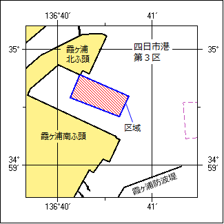 8年69項 伊勢湾 − 四日市港、第3区 掘下げ作業等 霞ヶ浦北ふ頭南側において、スパッド台船による掘下げ作業等が実施される。 期 間 令和8年6月30日(予備日を含む)までの日出〜日没 区 域 34-59-36N 136-40-26E 付近 備 考 汚濁防止膜が設置される。 海 図 W94 出 所 四日市港長