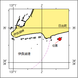 8年89項 本州南岸 − 伊良湖岬、伊良湖港付近 灯付浮標消灯 伊良湖岬東側の潜堤明示用の黄色灯付浮標は消灯している。 復旧予定 未定 位 置 34-34-41N 137-02-38E 付近 海 図 W1064 出 所 鳥羽海上保安部