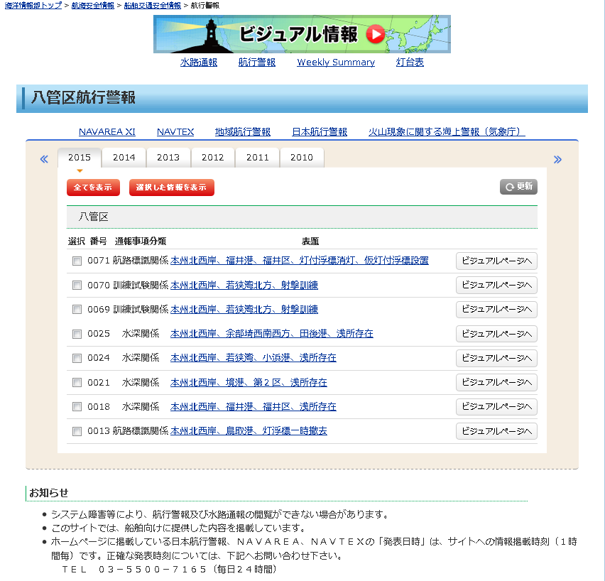 水路通報・航行警報とは?はこちらをご覧下さい。