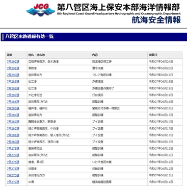 第八管区内の船舶交通の安全に必要な情報を、提供しています。