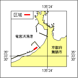 竜宮浜漁港の海図図載の離岸堤は一部撤去されている。 区 域 下記2地点を結ぶ線上 (1) 35-33-34.4N 135-23-49.0E (2) 35-33-35.9N 135-23-51.6E 海 図 W1167 出 所 八本部海洋情報部