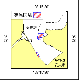 安来港において、潜水士による港湾施設の劣化状況調査が実施される。 期 間 令和7年12月15日〜26日のうち3日(予備日令和8年1月5日〜23日) 日出〜日没 区 域 下記2地点付近 (1) 35-26-02N 133-15-30E (2) 35-25-52N 133-15-28E 備 考 潜水作業中は国際信号旗「A」旗掲揚 海 図 W1174(分図「安来港」) 出 所 境海上保安部