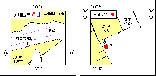 境港第1区及び第2区において、クレーン付台船による掘下げ作業及び深浅測量が実施される。