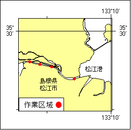 松江港において、潜水士による海底土採取等が実施される。 期 間 令和8年5月11日〜9月30日のうち6日 日出〜日没 区 域 付図のとおり 備 考 潜水作業中は国際信号旗「A旗」掲揚 警戒船配備 海 図 W1174 出 所 境海上保安部