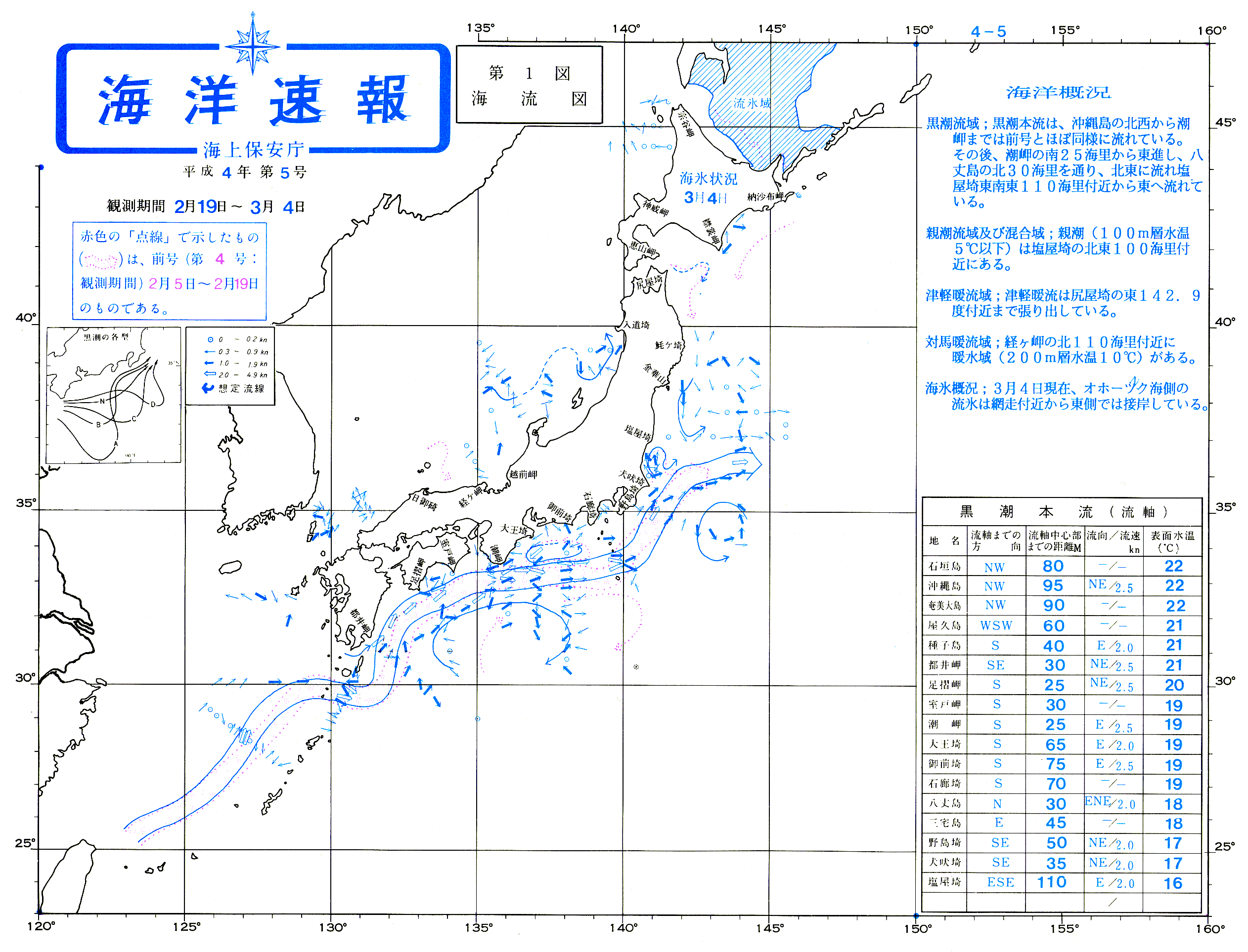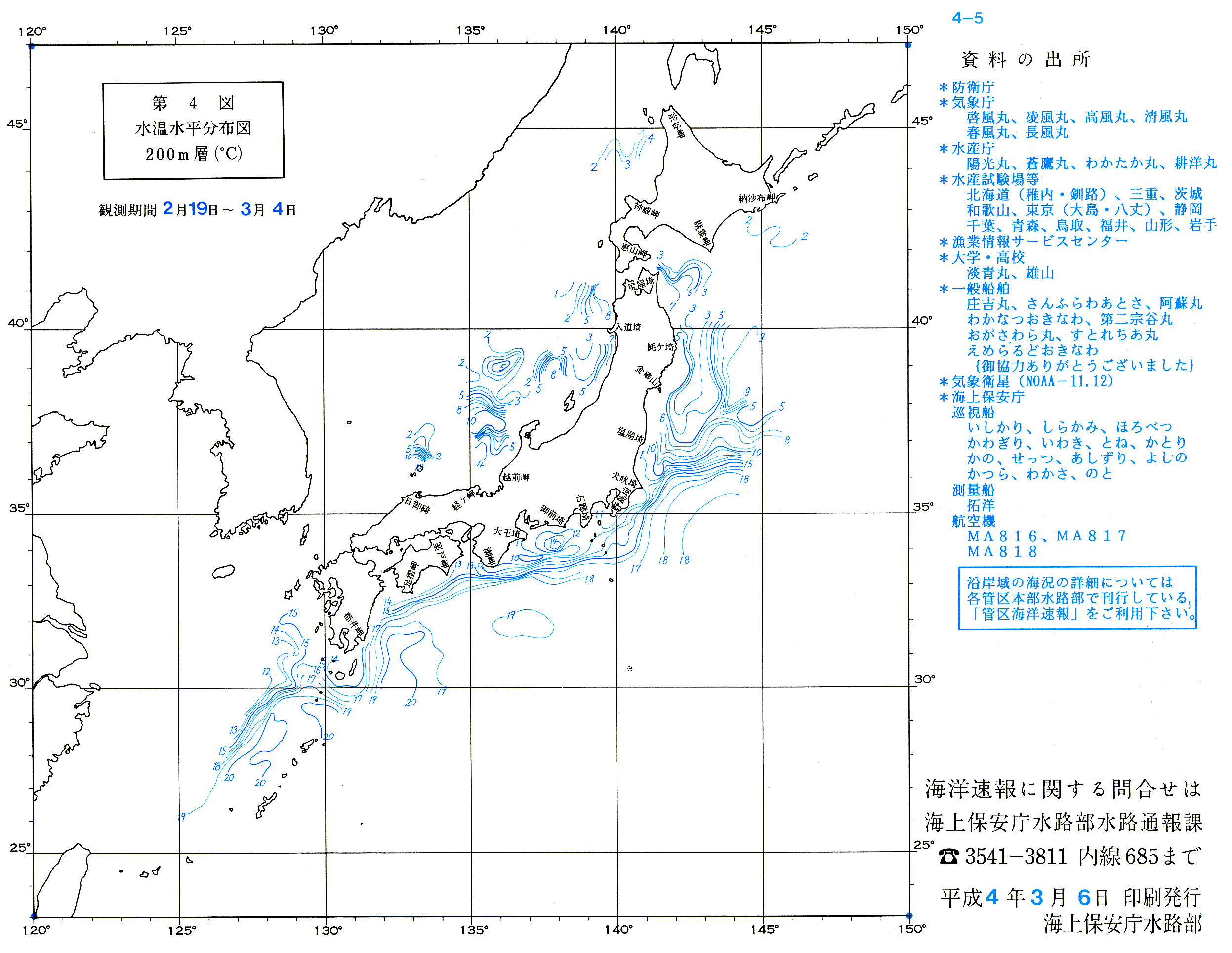 平成4年2月19日から平成4年3月4日までの海上保安庁及びその他の機関による観測