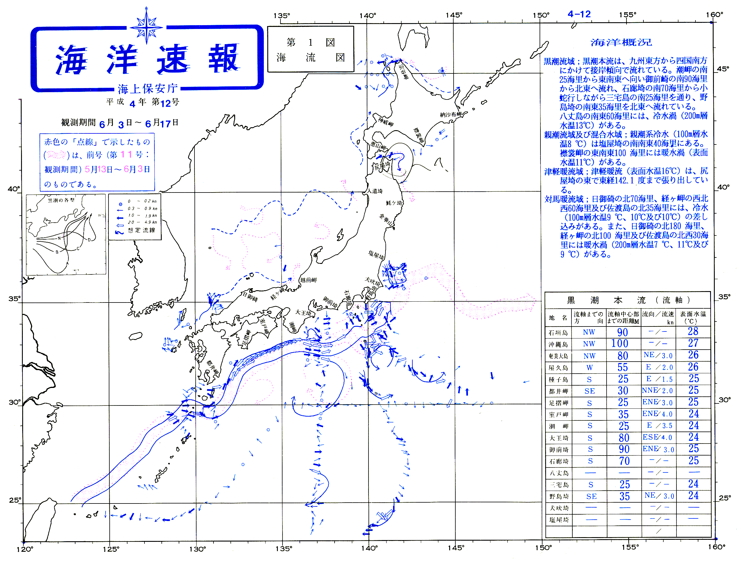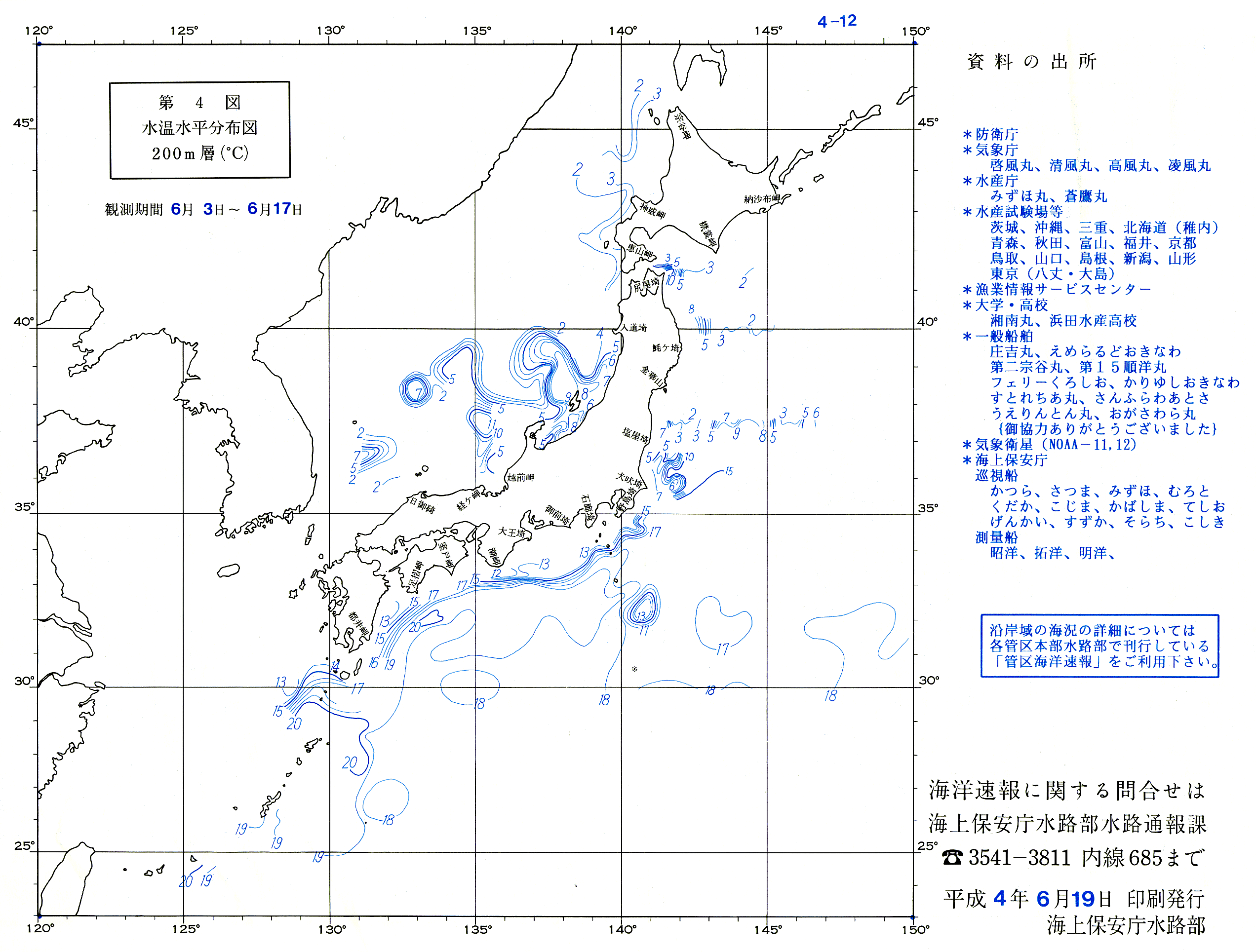 平成4年6月3日から平成4年6月17日までの海上保安庁及びその他の機関による観測
