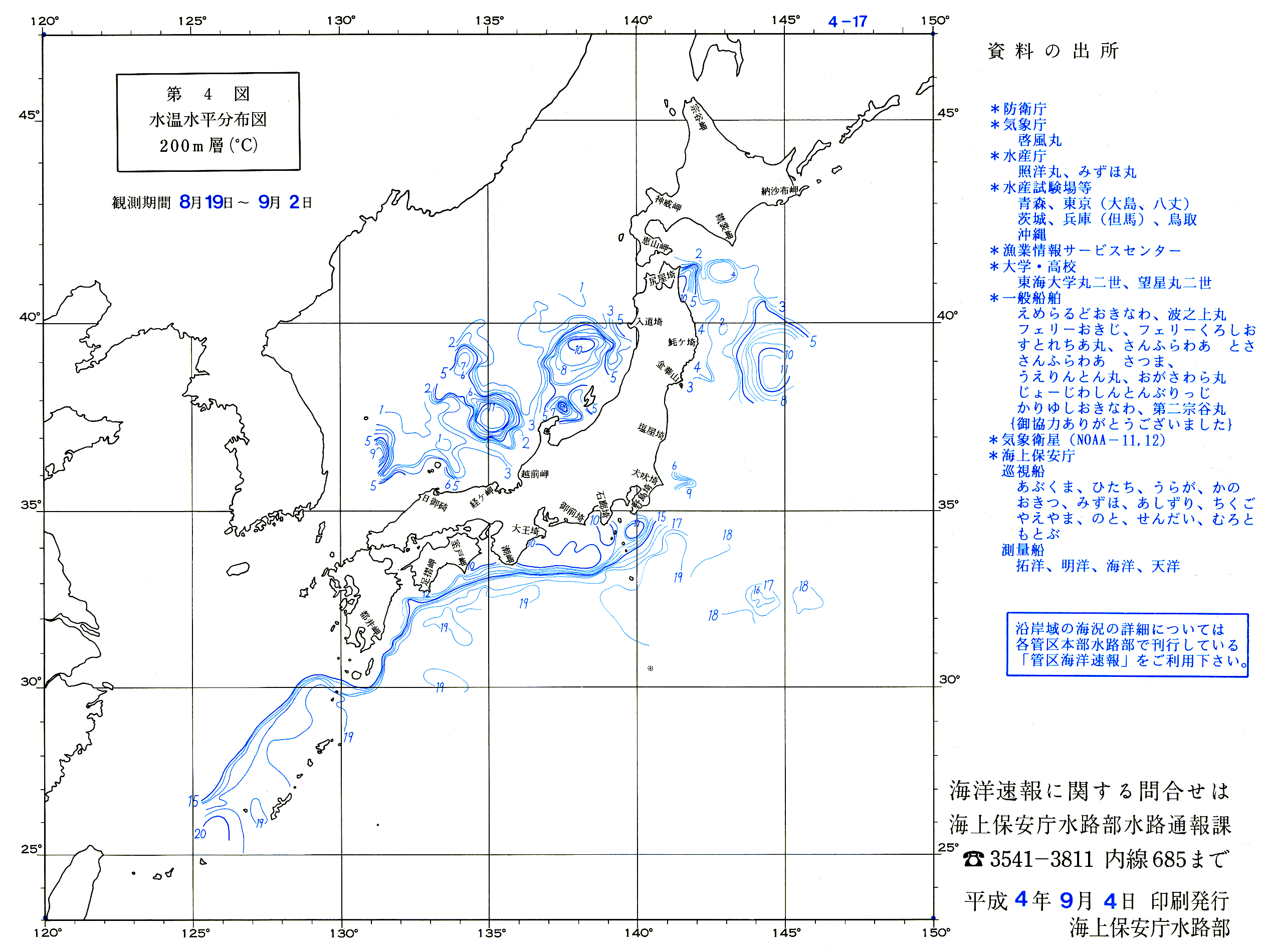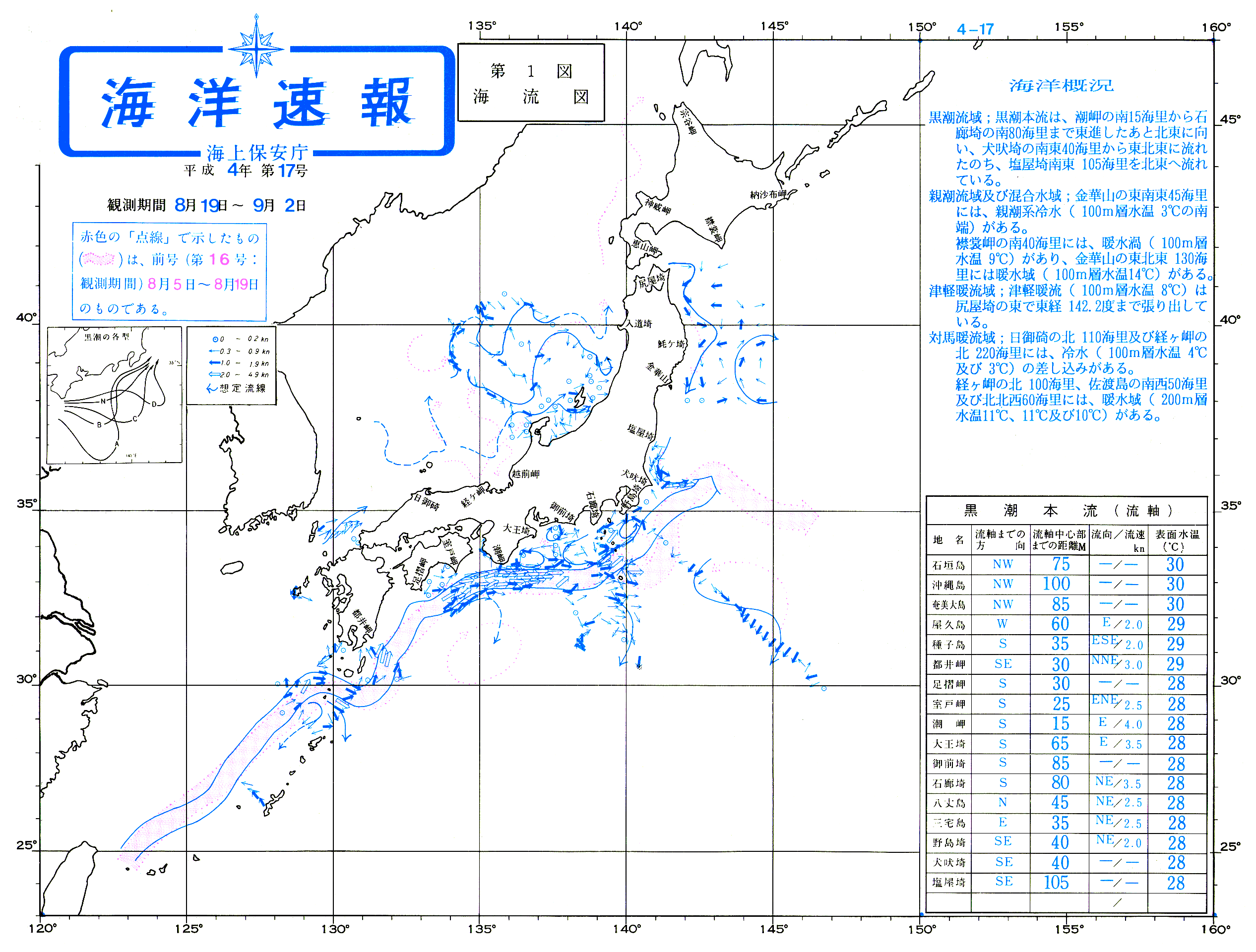 平成4年8月19日から平成4年9月2日までの海上保安庁及びその他の機関による観測