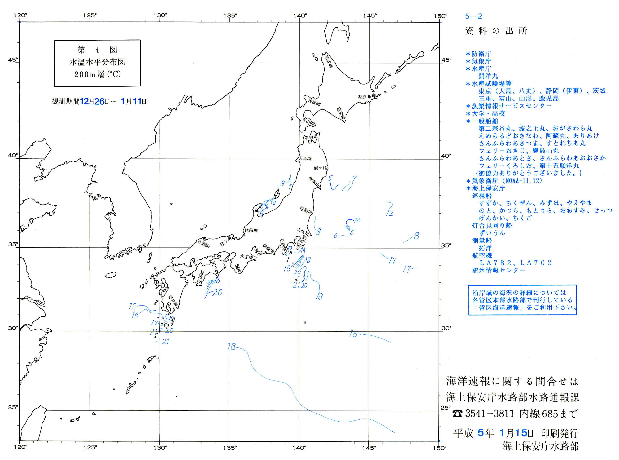 平成4年12月26日から平成5年1月11日までの海上保安庁及びその他の機関による観測