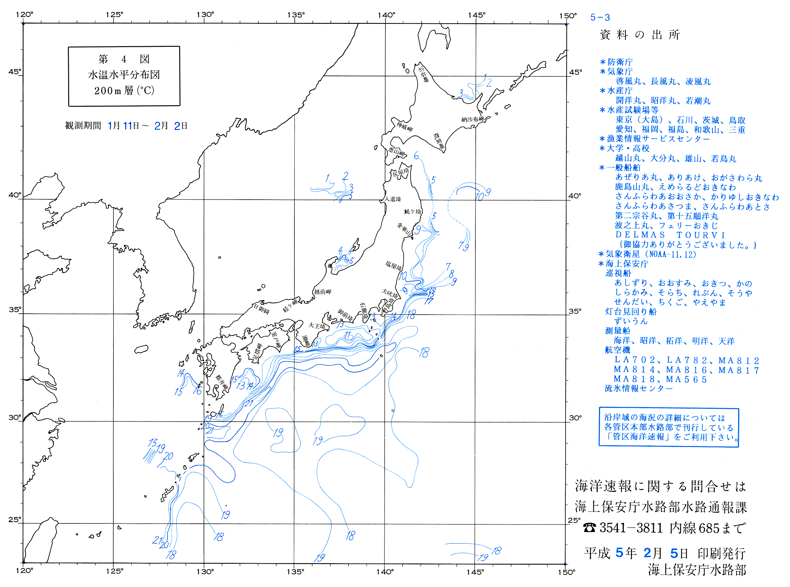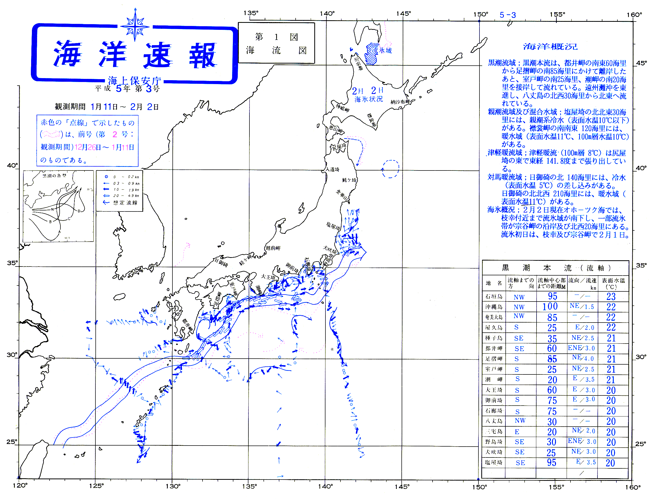 平成5年1月11日から平成5年2月2日までの海上保安庁及びその他の機関による観測