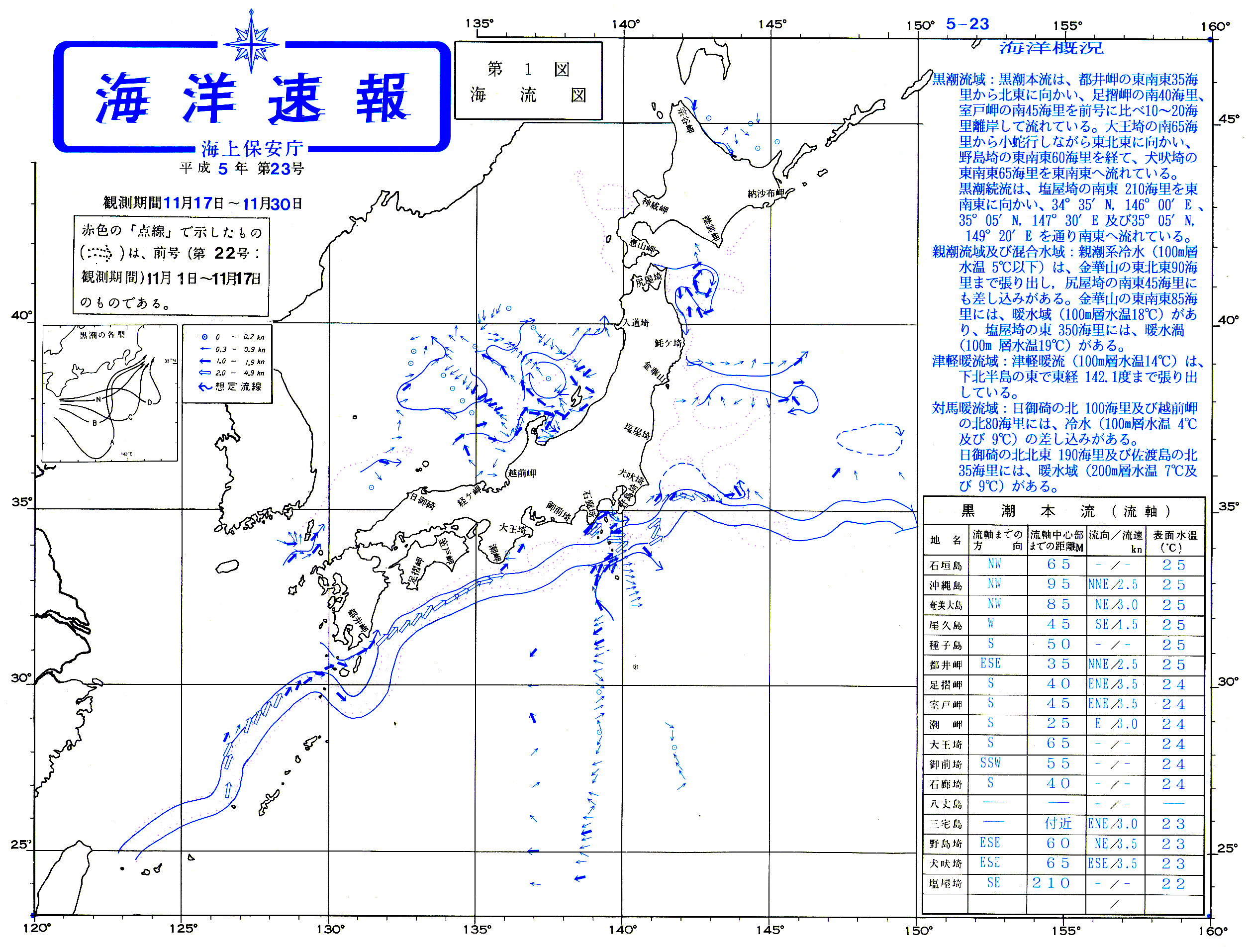 平成5年11月17日から平成5年11月30日までの海上保安庁及びその他の機関による観測