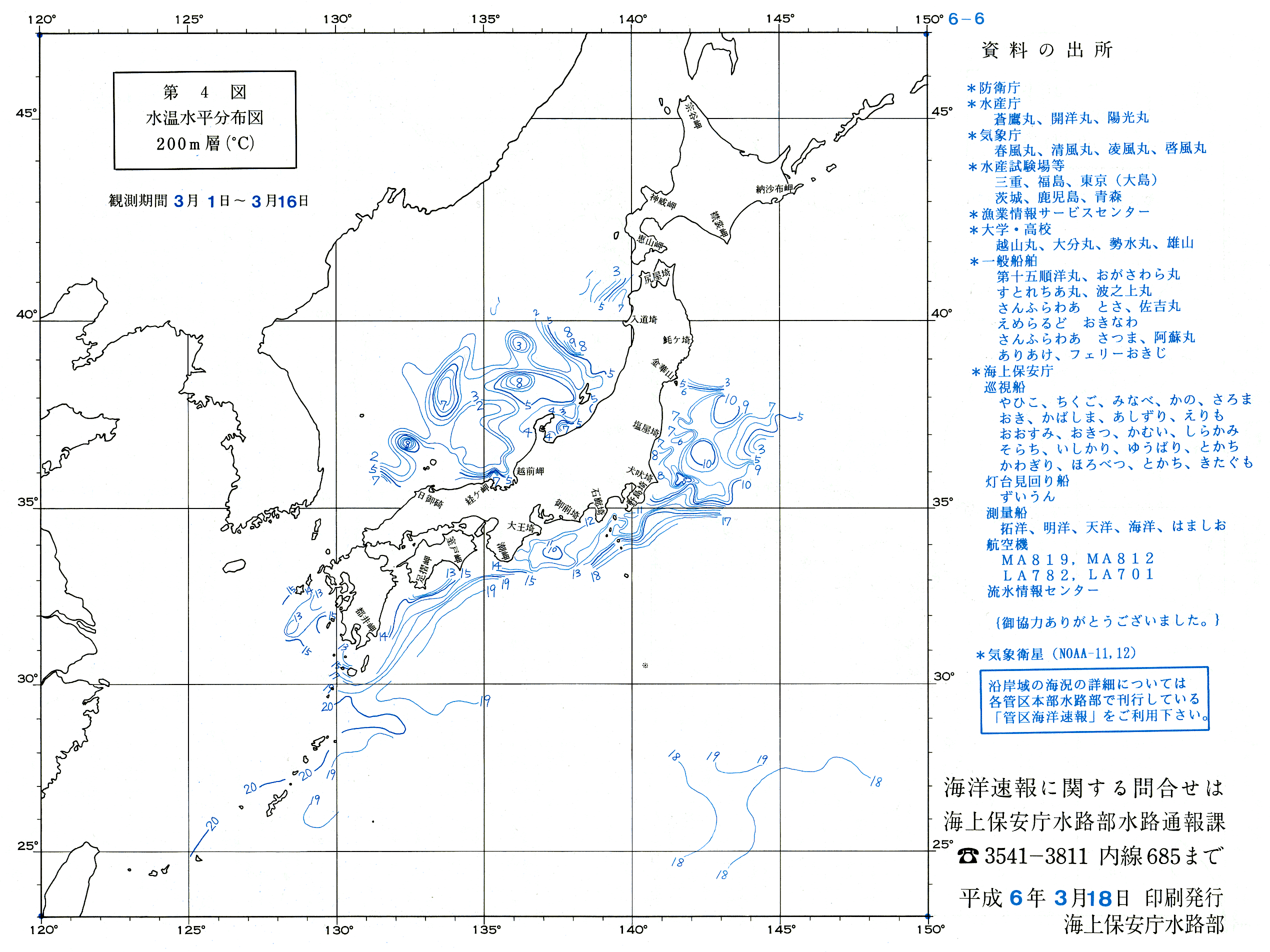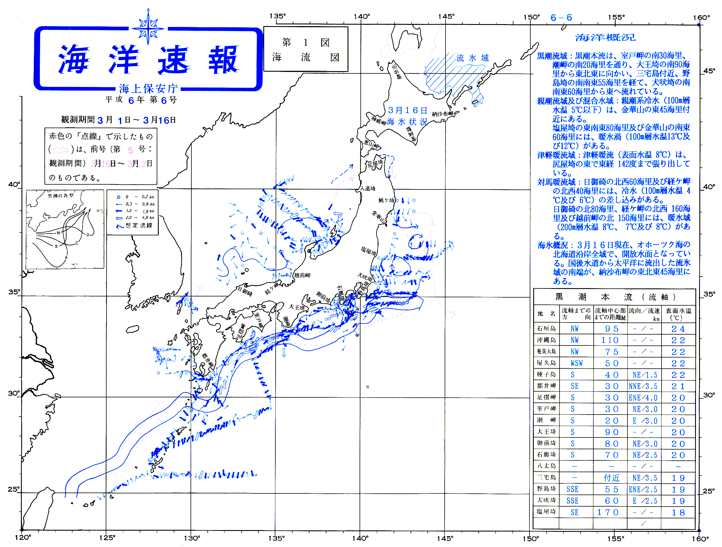 平成6年3月1日から平成6年3月16日までの海上保安庁及びその他の機関による観測