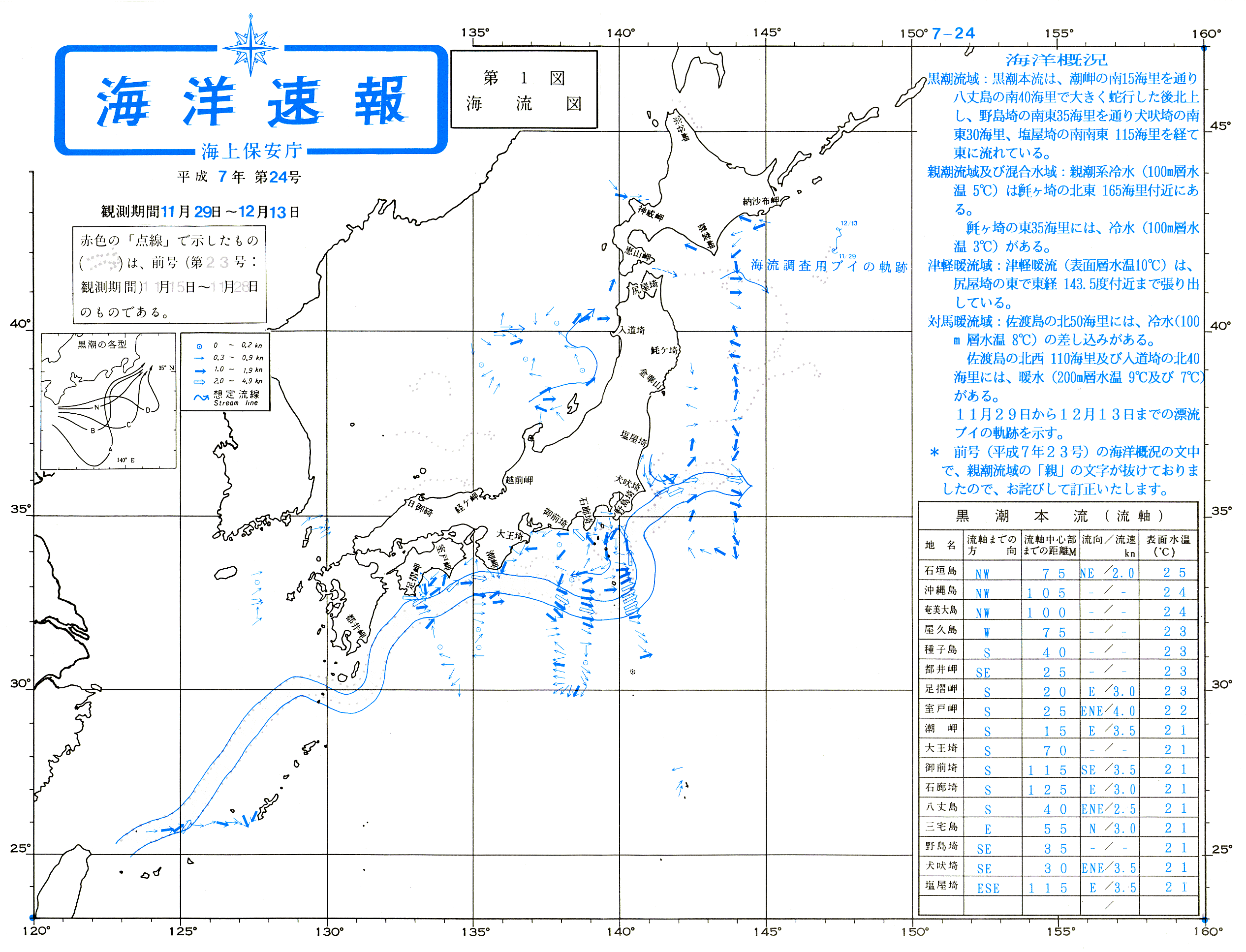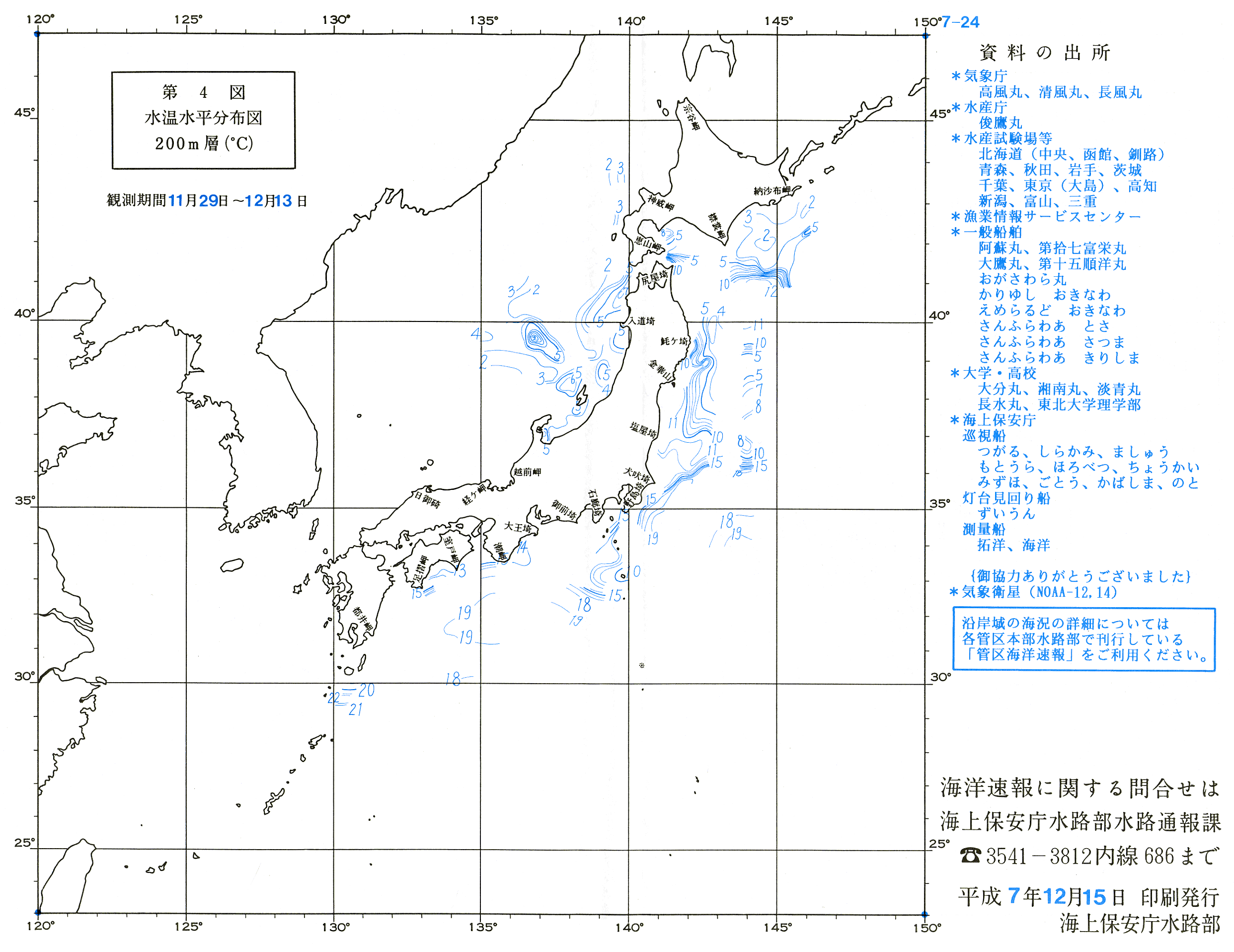 平成7年11月29日から平成7年12月13日までの海上保安庁及びその他の機関による観測