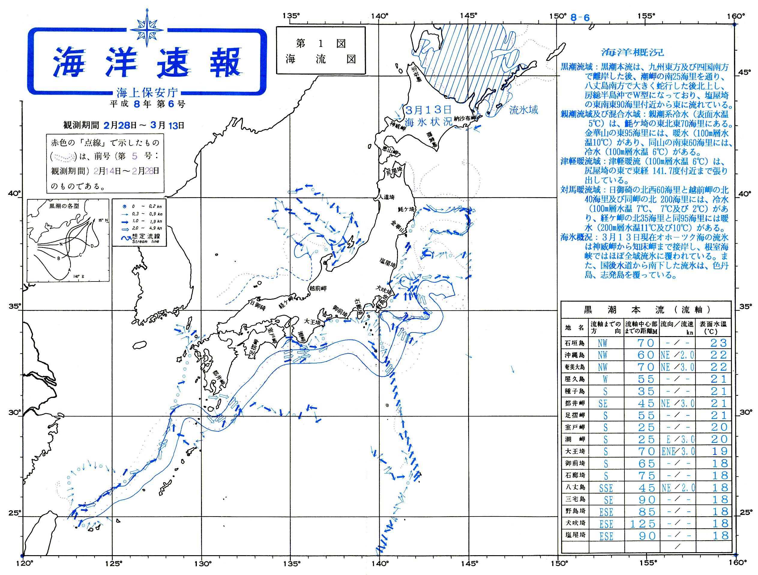 平成8年2月28日から平成8年3月13日までの海上保安庁及びその他の機関による観測